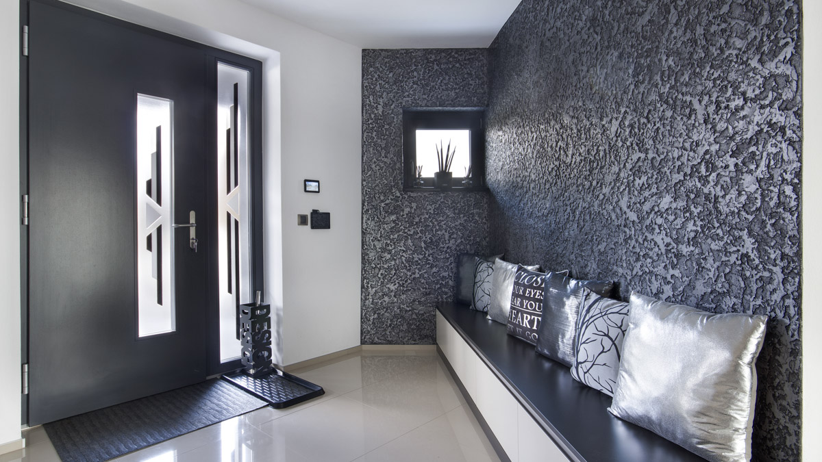 Stěrka Granite je velice dominantní a výrazná strukturovaná stěrka. Ideální je pro krb, obývací pokoj, nebo předsíň.