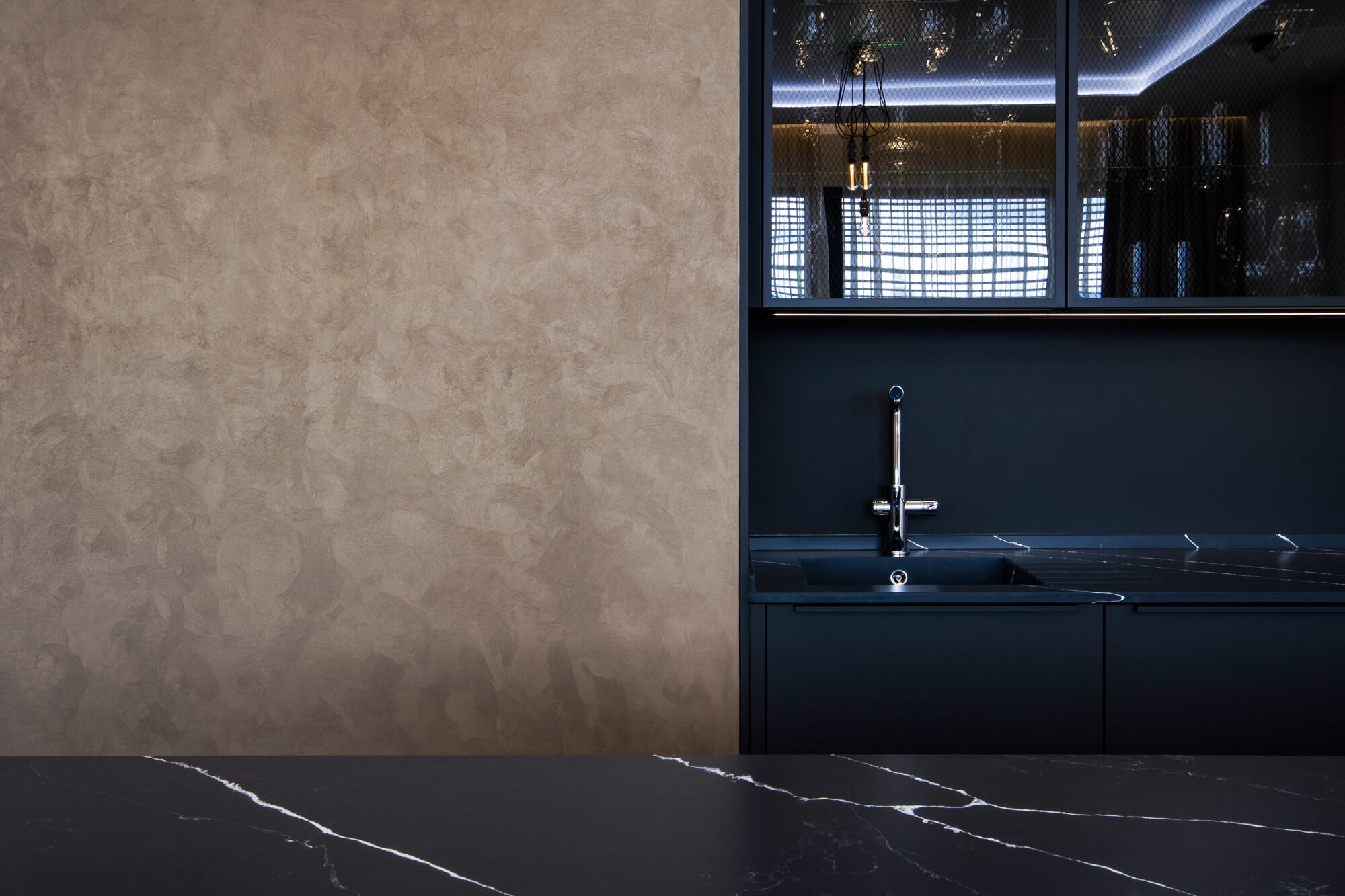 Perlata nejlépe vyniká v kombinaci s dobře zvoleným osvětlením, ideálně směrovým nebo bodovým, které podtrhne strukturu a proměnlivost povrchu. Perlata tak v interiéru nehraje jen dekorativní roli, ale skutečně podtrhuje atmosféru místnosti.