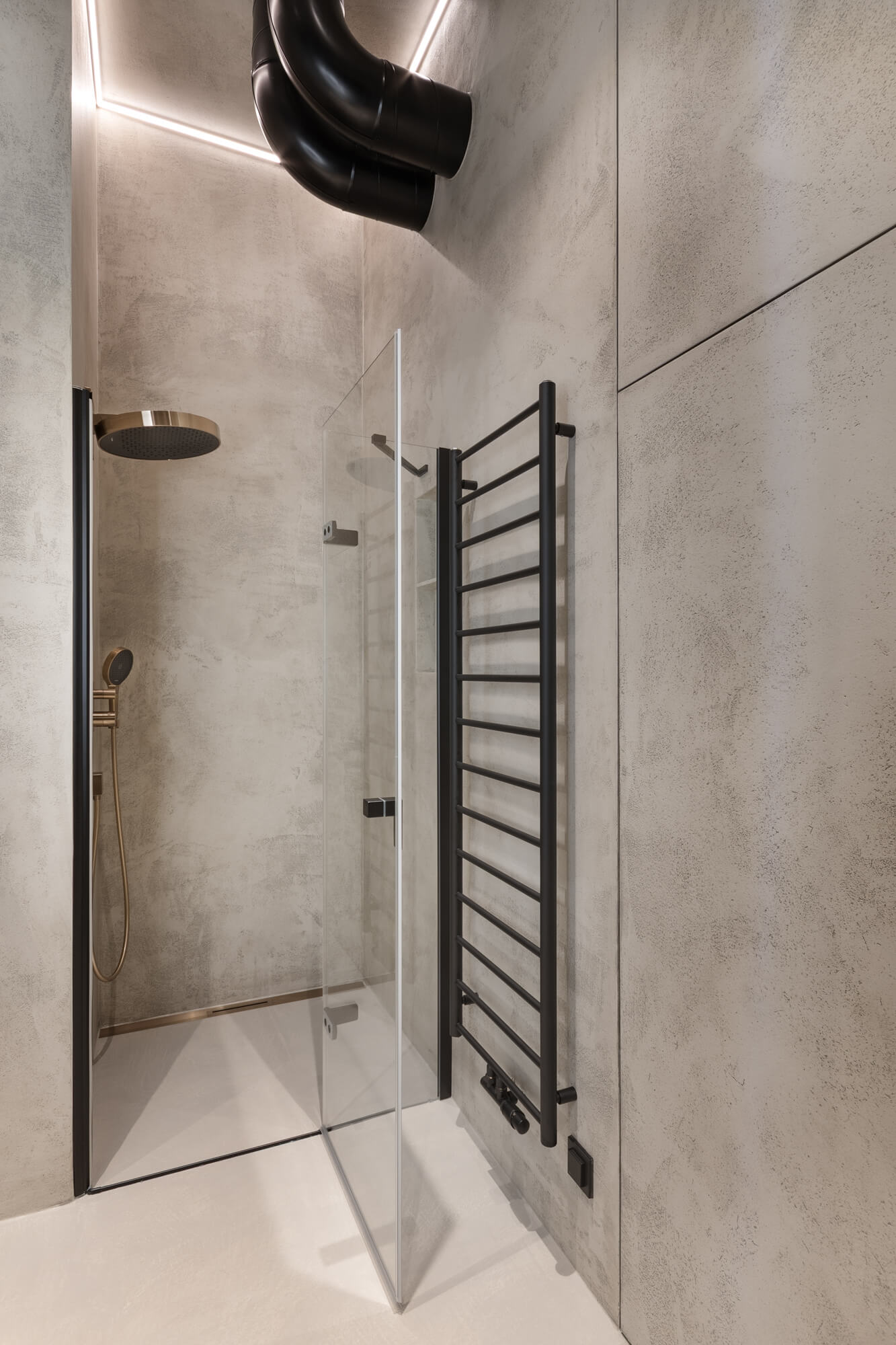V tomto elegantním bytě pod pražským Vyšehradem jsme realizovali povrchy od podlahy až po strop. Na podlahu byla použita stěrka Betonepox® Ultrasoft, která kombinuje jemný vzhled a vysokou odolnost. V koupelně klient zvolil stěrku Betonepox® Classic a na strop Imitaci betonu® Junior s dílcováním, které podtrhuje industriální charakter interiéru.