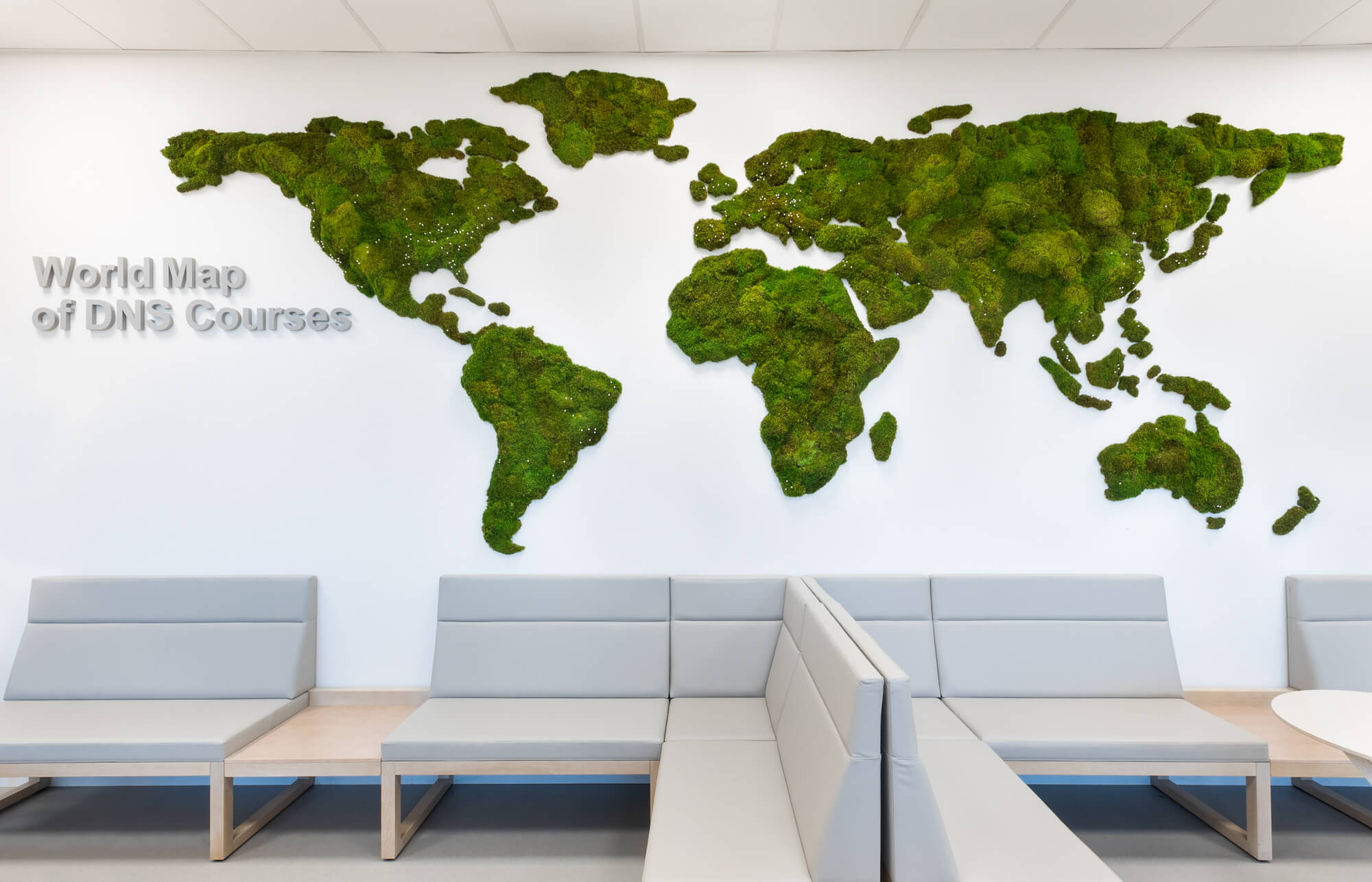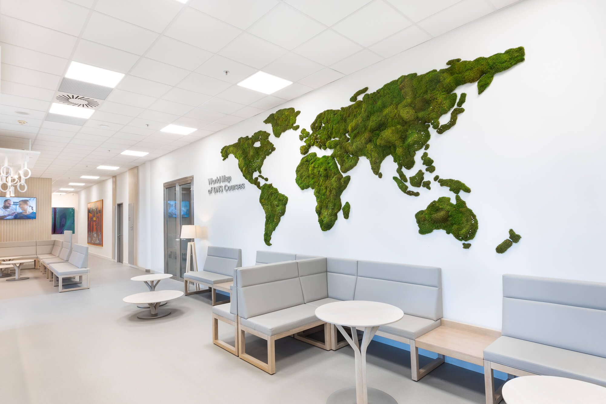 Centrum pohybové medicíny Pavla Koláře je jedinečné zdravotnické zařízení zaměřené na rehabilitaci dospělých i dětí, kde je kladen důraz na klidné a kultivované prostředí. V interiéru jsme realizovali 3D mechovou mapu světa, která se stala výrazným, ale citlivým designovým prvkem recepce a čekacích prostor. Mechová instalace propojuje přírodní materiál s moderním interiérem, zjemňuje prostor a přispívá k příjemné atmosféře, která podporuje pohodu pacientů i návštěvníků.