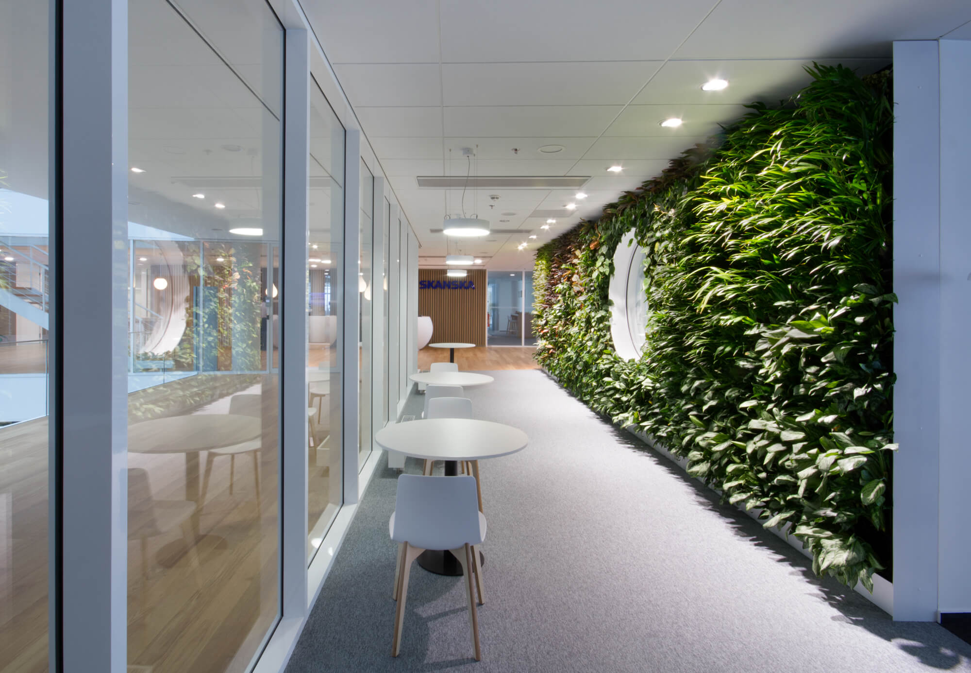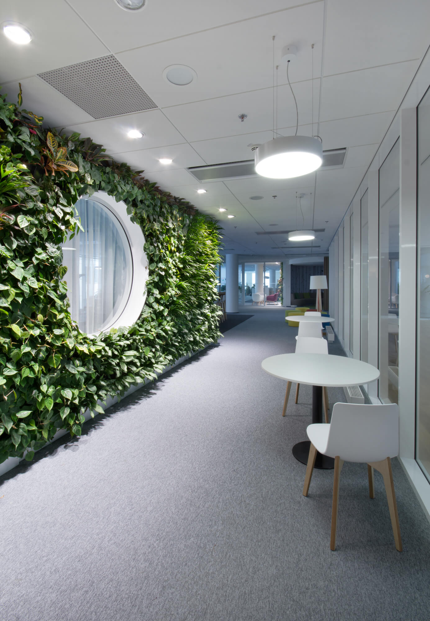 Corso Court je moderní kancelářská budova navržená s důrazem na zdravé a kvalitní pracovní prostředí. Projekt klade vysoké nároky na udržitelnost, energetickou efektivitu a kvalitu vnitřního klimatu, což se odráží jak v architektonickém řešení, tak v použitých technologiích. V rámci interiéru jsme realizovali vertikální kaskádové zahrady Cascade Garden®, které přirozeně doplňují koncept budovy zaměřený na pohodu uživatelů a kvalitu pracovního prostředí. Zeleň se zde stává nedílnou součástí interiéru a přispívá k vizuálnímu i funkčnímu zjemnění prostoru. Výhodou zvoleného řešení Cascade Garden® je jednoduchá instalace, nízké nároky na obsluhu a dlouhodobá provozní efektivita, které odpovídají filozofii projektu společnosti Skanska.