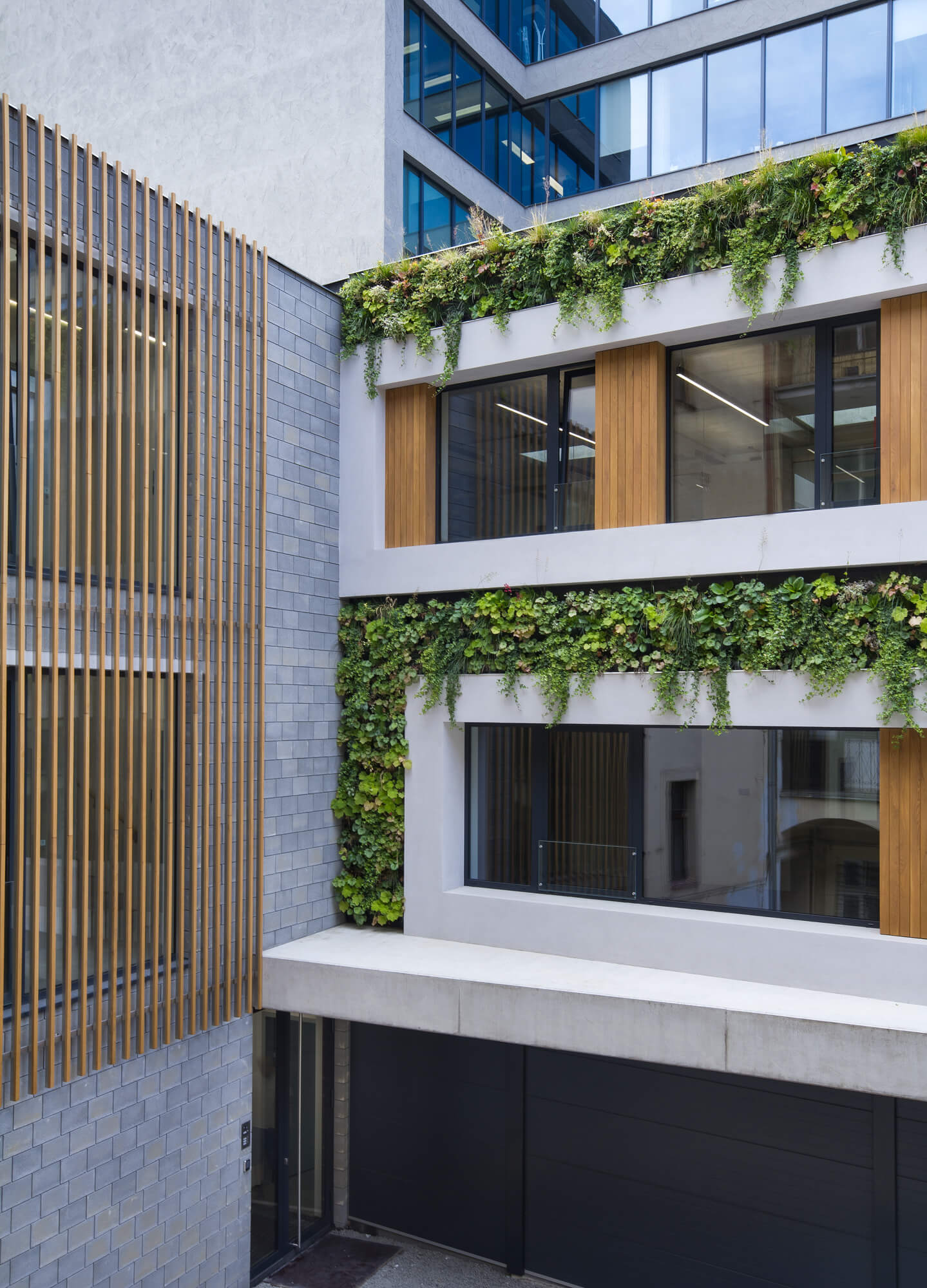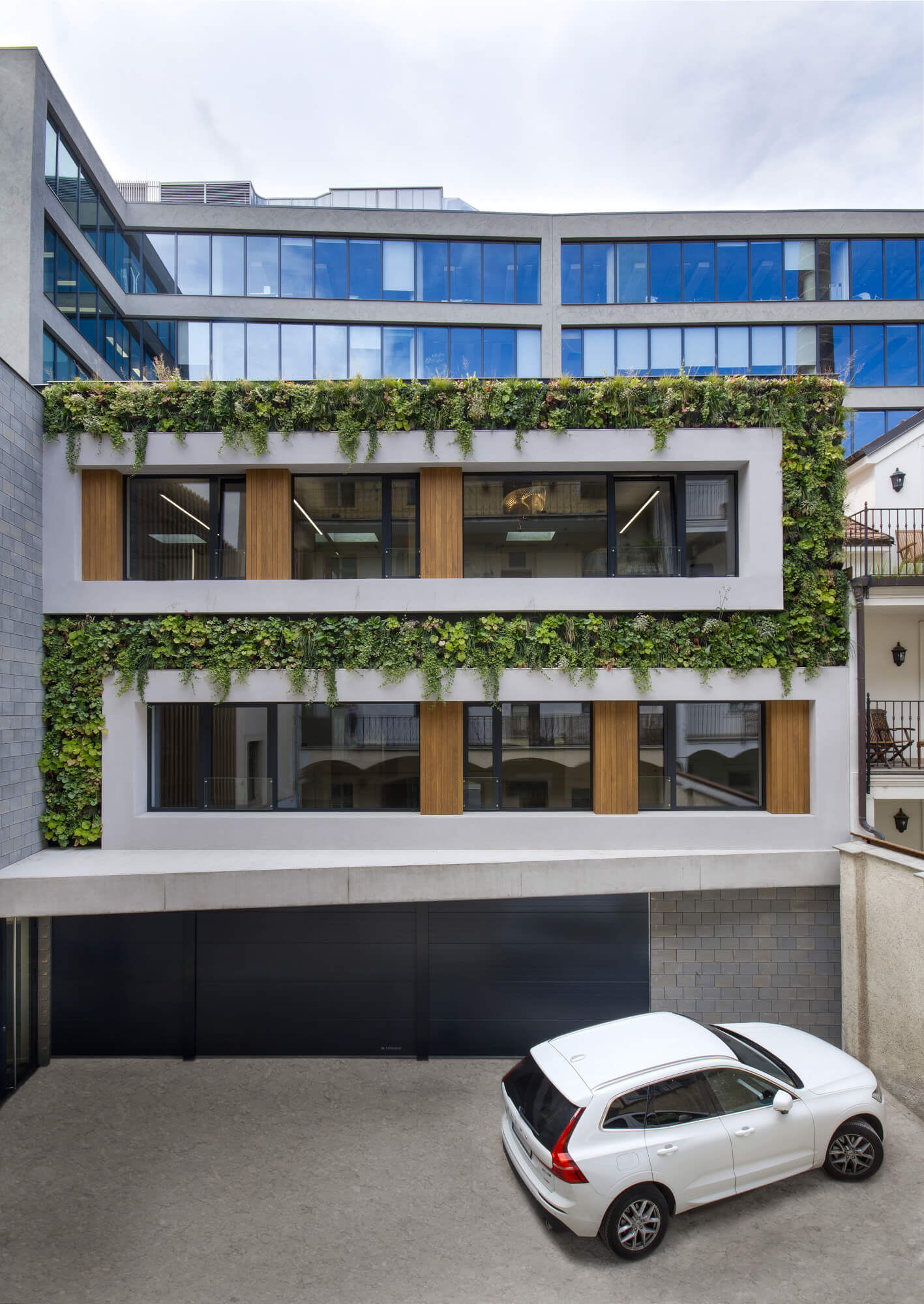 Systém vertikálních zahrad Cascade Garden® nachází uplatnění nejen v interiéru, ale i na fasádách budov. Živá kaskádová zahrada zde přirozeně doplňuje architekturu objektu a přináší do exteriéru výrazný zelený prvek s dlouhodobým vizuálním efektem.