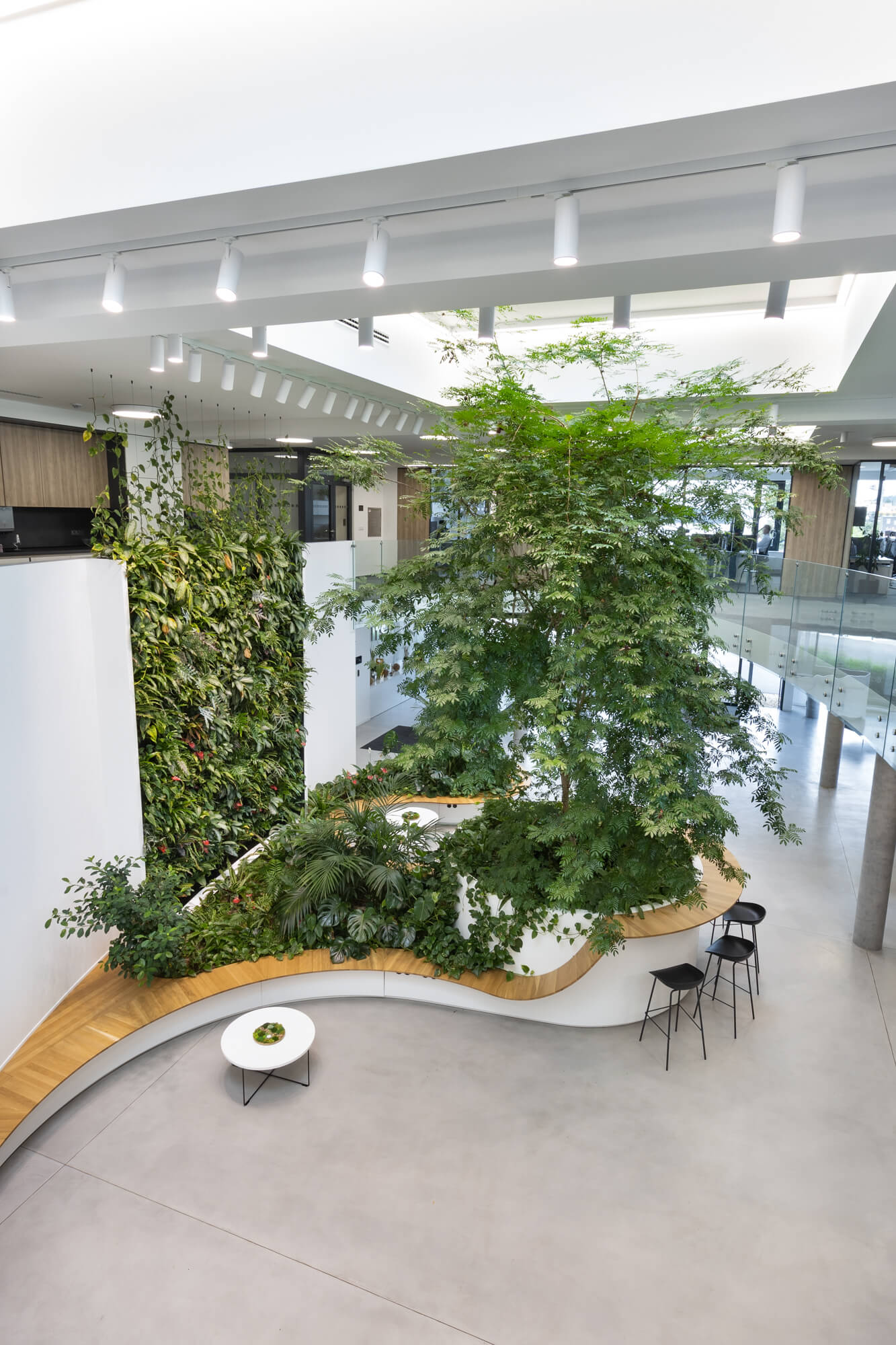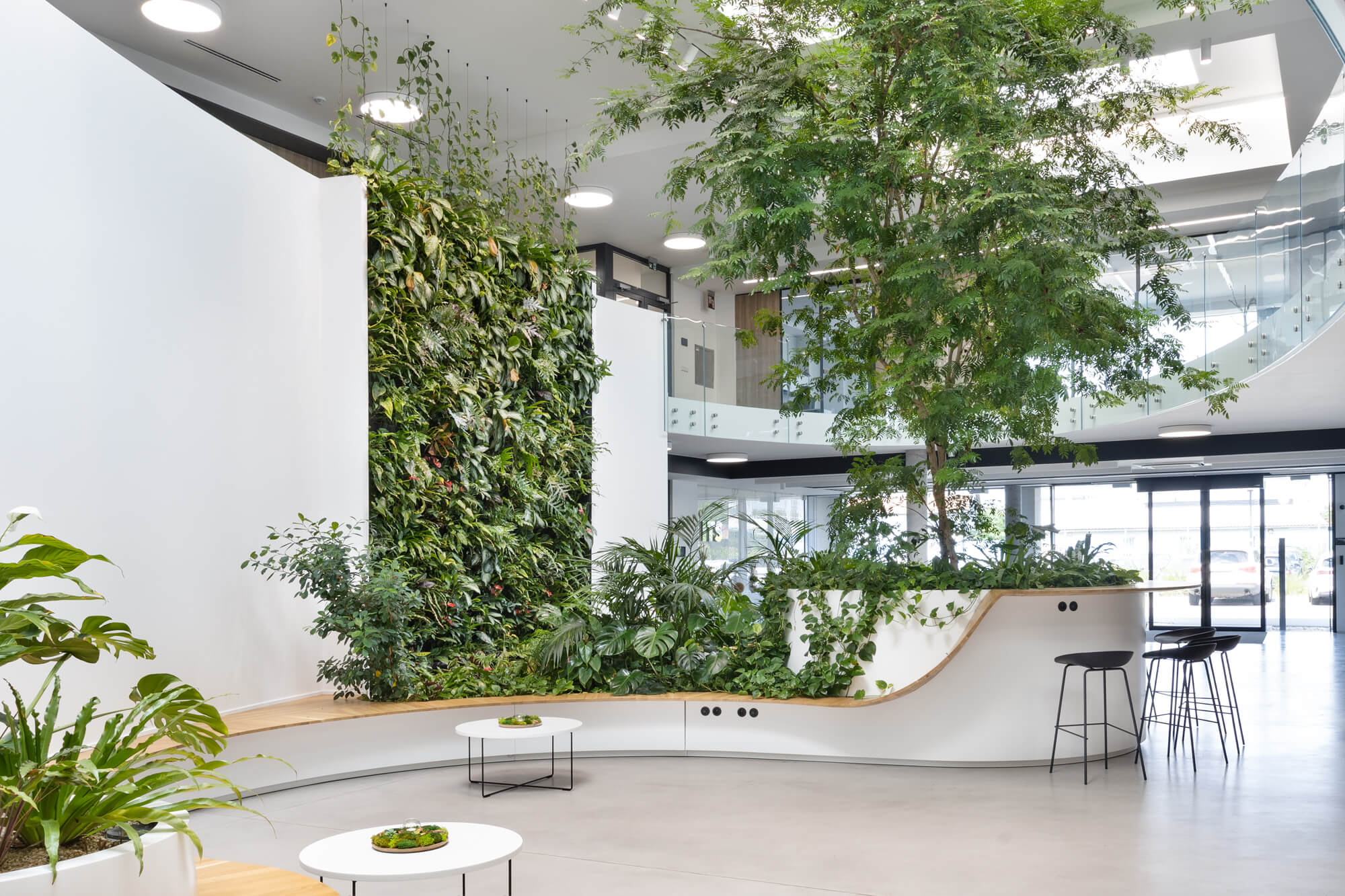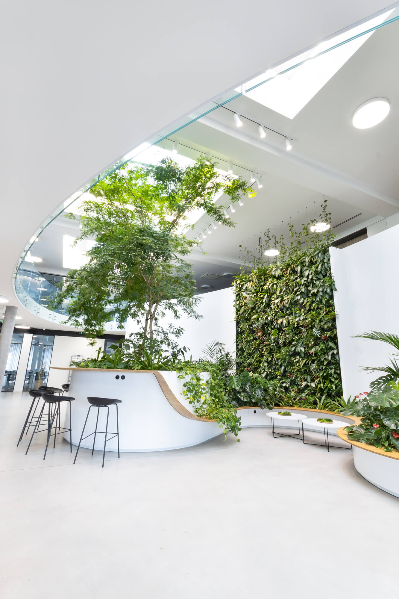 Vertikální zahrada Cascade Garden® v atriu administrativní budovy v Brně přináší do prostoru klid a svěží zeleň. Díky přirozenému dennímu světlu a velkorysé výšce atria bylo možné navrhnout řešení, které se stalo výraznou dominantou celého interiéru. Zahrada Cascade Garden® harmonicky doplňuje ostatní rostlinné prvky a přispívá ke zdravějšímu a inspirativnímu pracovnímu prostředí. Živá zeleň v interiéru pomáhá zlepšovat akustiku, regulovat vlhkost a má pozitivní vliv na psychickou pohodu uživatelů budovy.