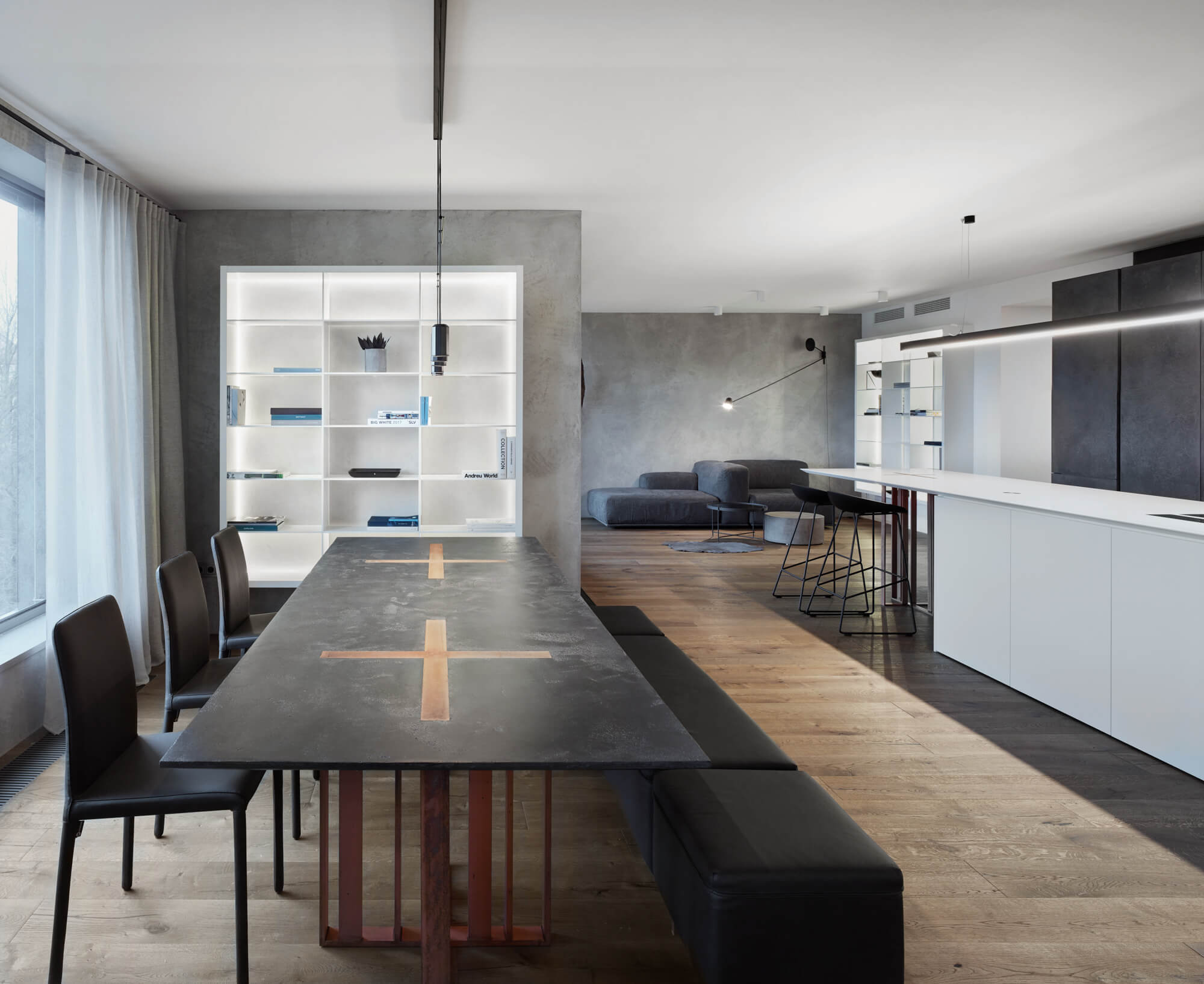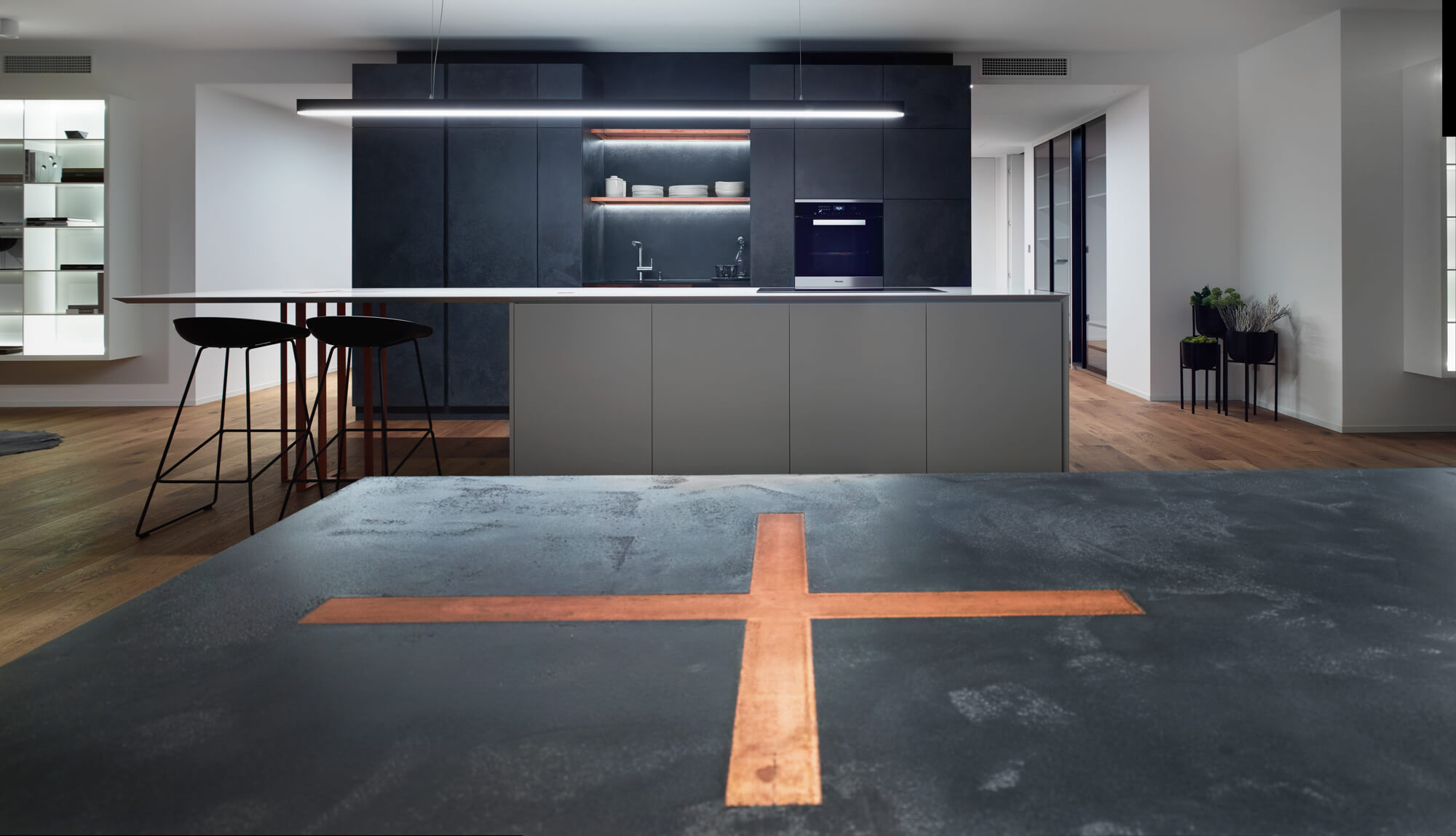 Betonovou stěrku Betonepox® je možné aplikovat také na dvířka skříněk nebo desku jídelního stolu. Díky své vysoké tvrdosti a odolnosti zajišťuje dlouhou životnost, snadnou údržbu a jednotný design interiéru.