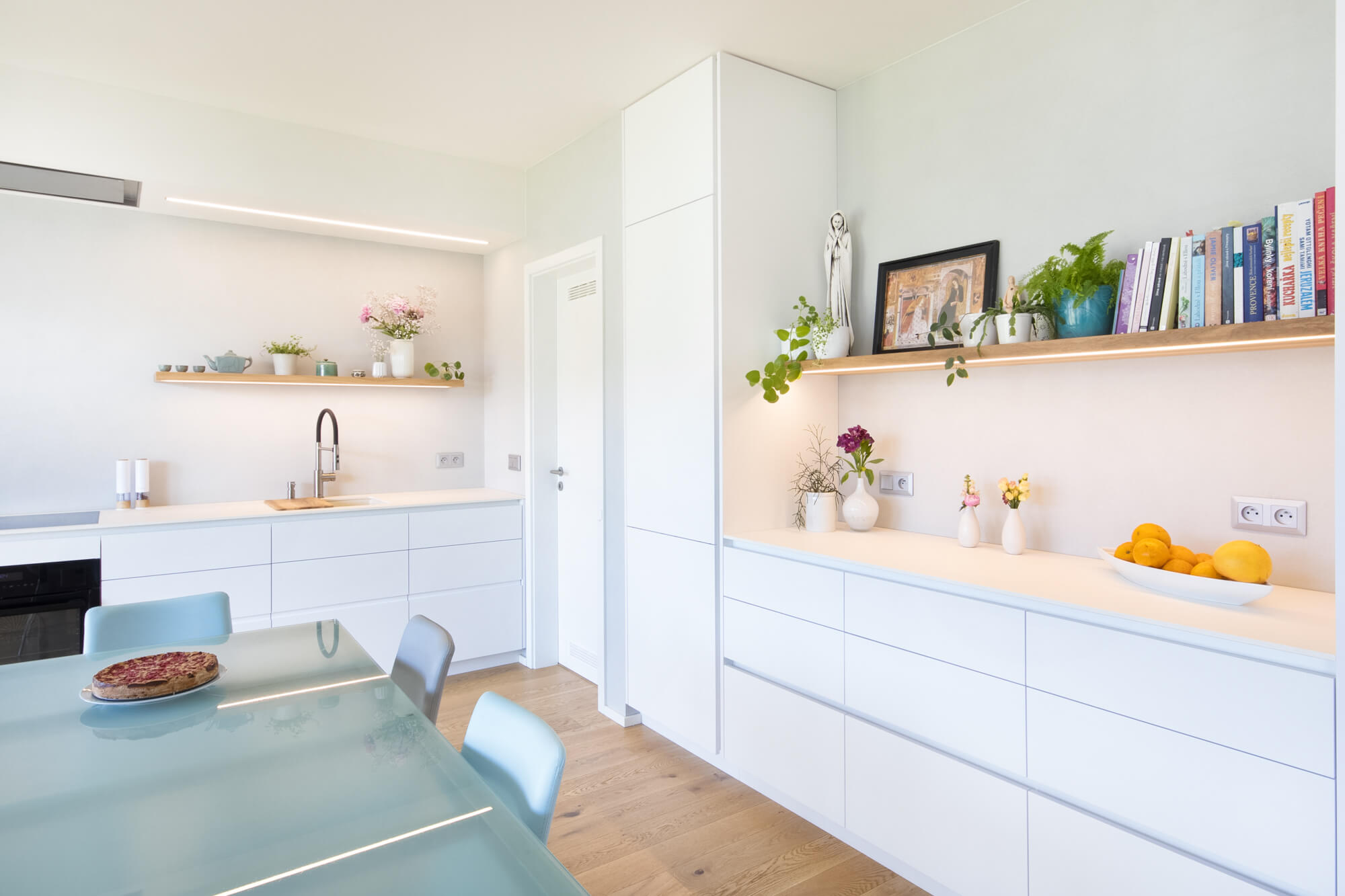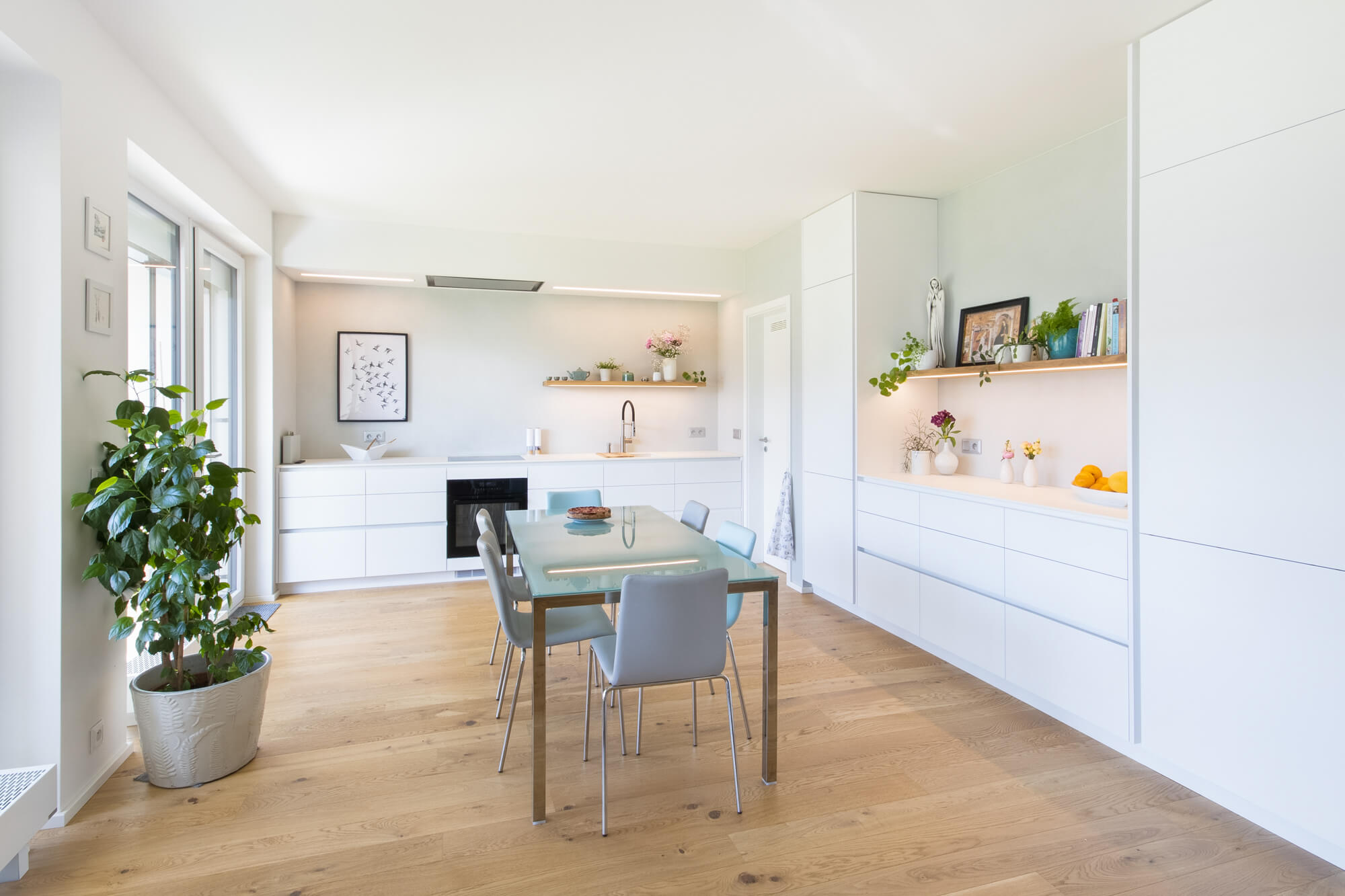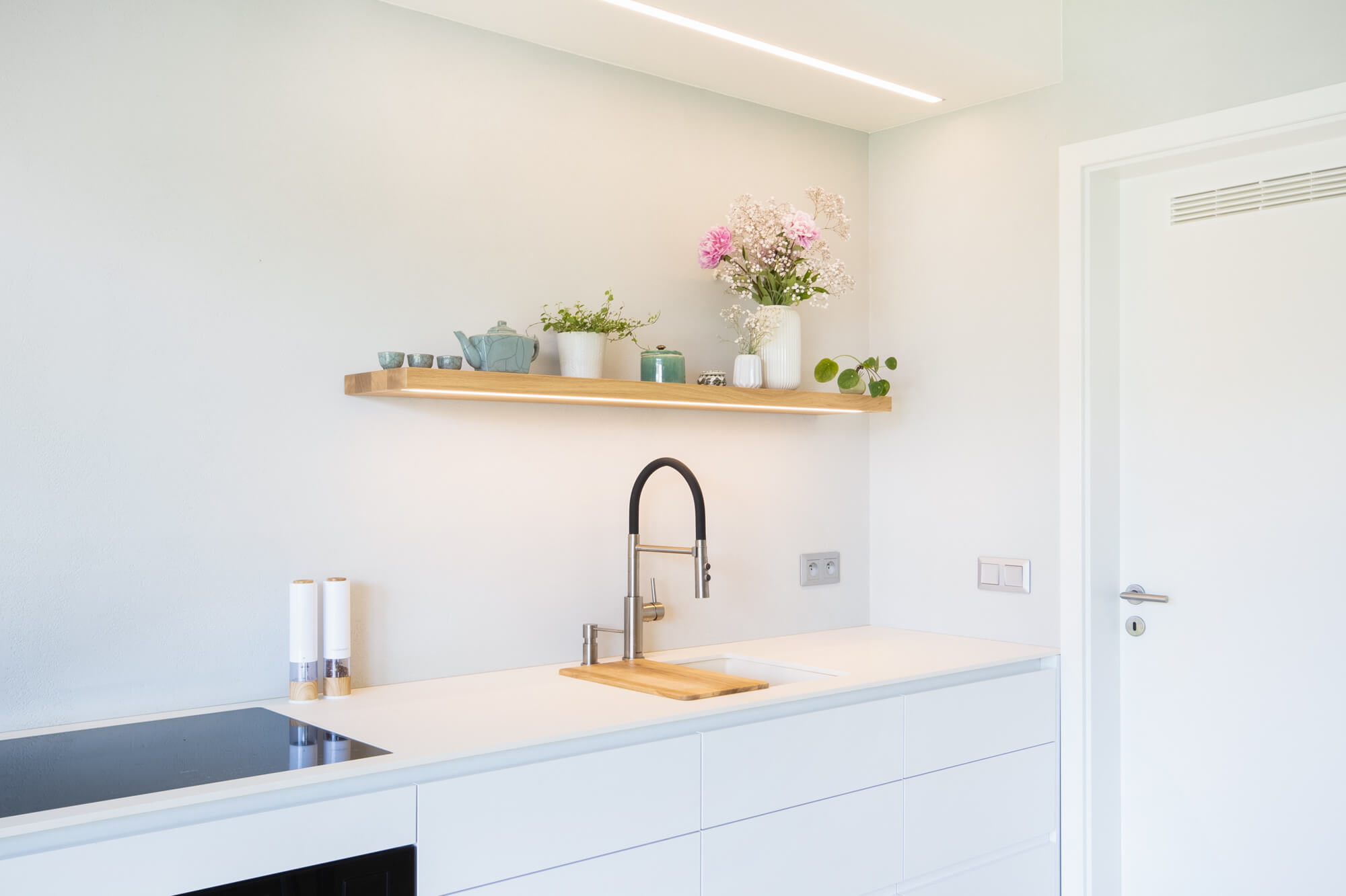 Majitelé tohoto domu snili o světlé kuchyni. Chytře zvolili stěrku Betonepox®, která je odolná vůči vodě, poškrábání a je dobře omyvatelná. To z ní dělá velice praktickou stěrku vhodnou právě třeba za kuchyňskou linku.