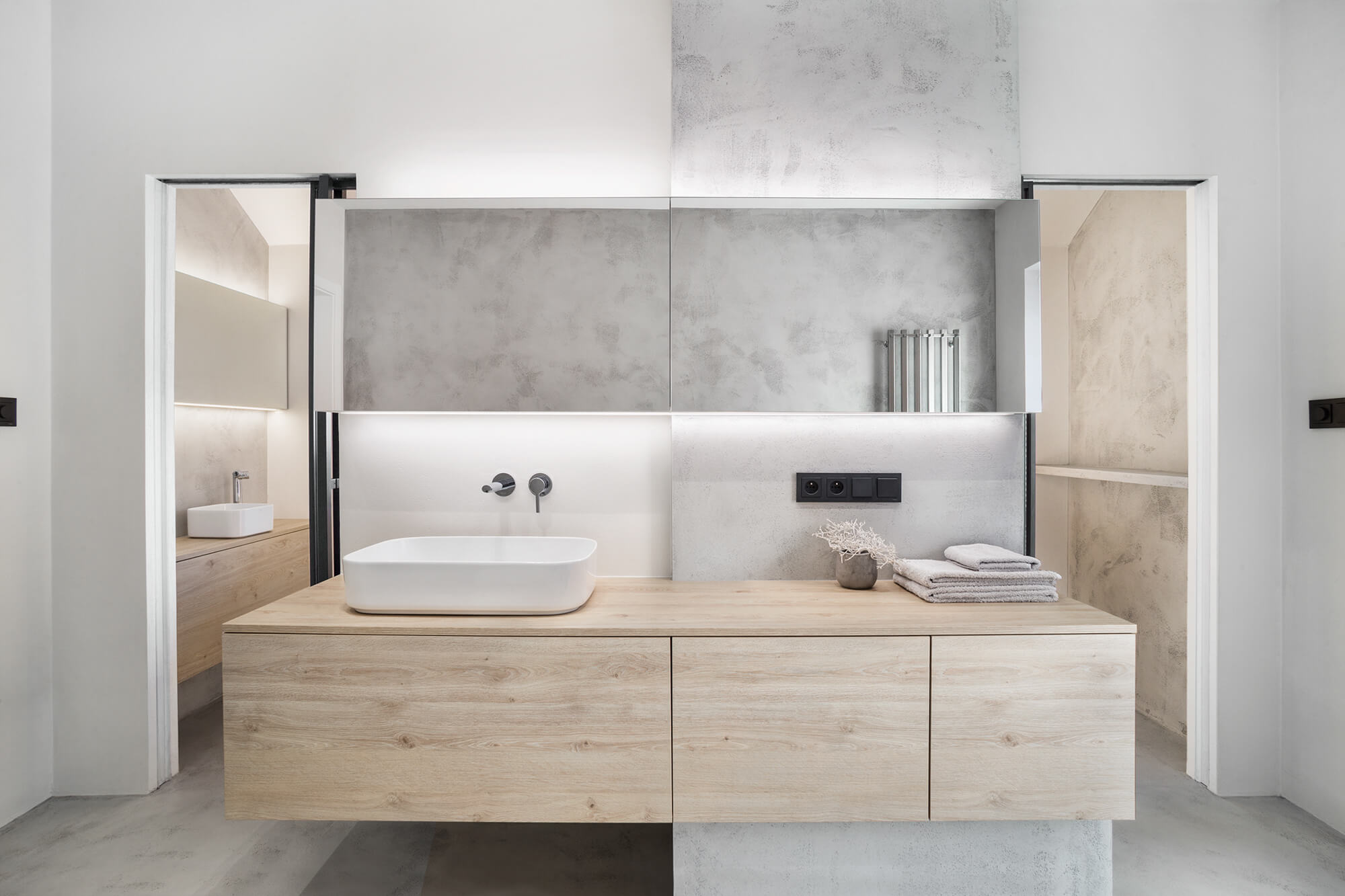 Interiérový design pod taktovkou studia MARTINA DESIGN a stěrka Betonepox® pomalu v každé místnosti. V rámci tohoto projektu jsme aplikovali stěrku i na nábytek u knihovny, což pomohlo celý interiér krásně opticky propojit. My jsme z výsledku nadšení stejně tak, jako majitelé tohoto rodinného domu.