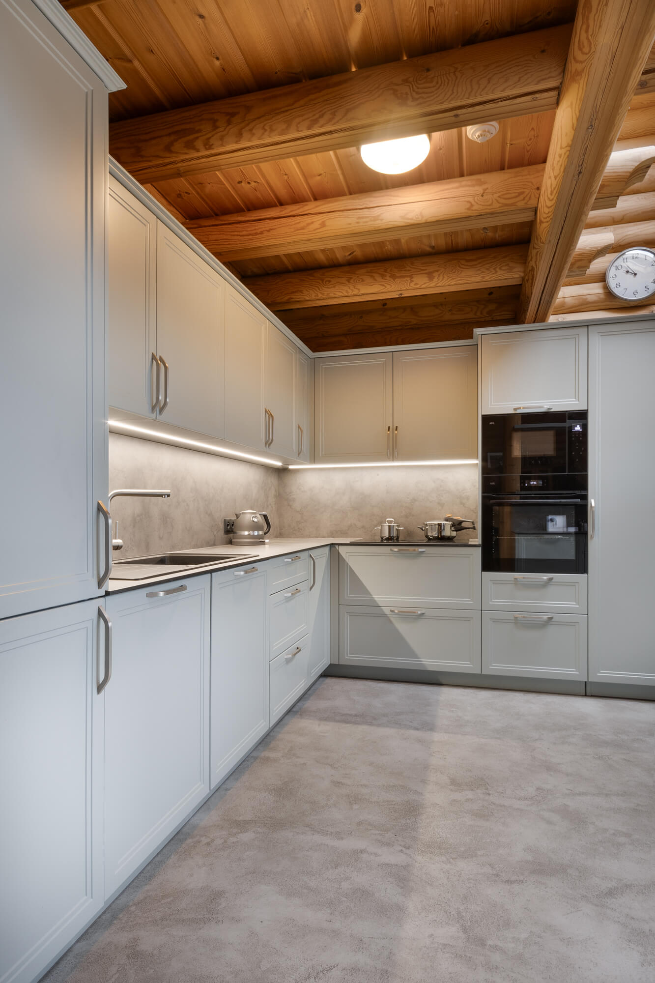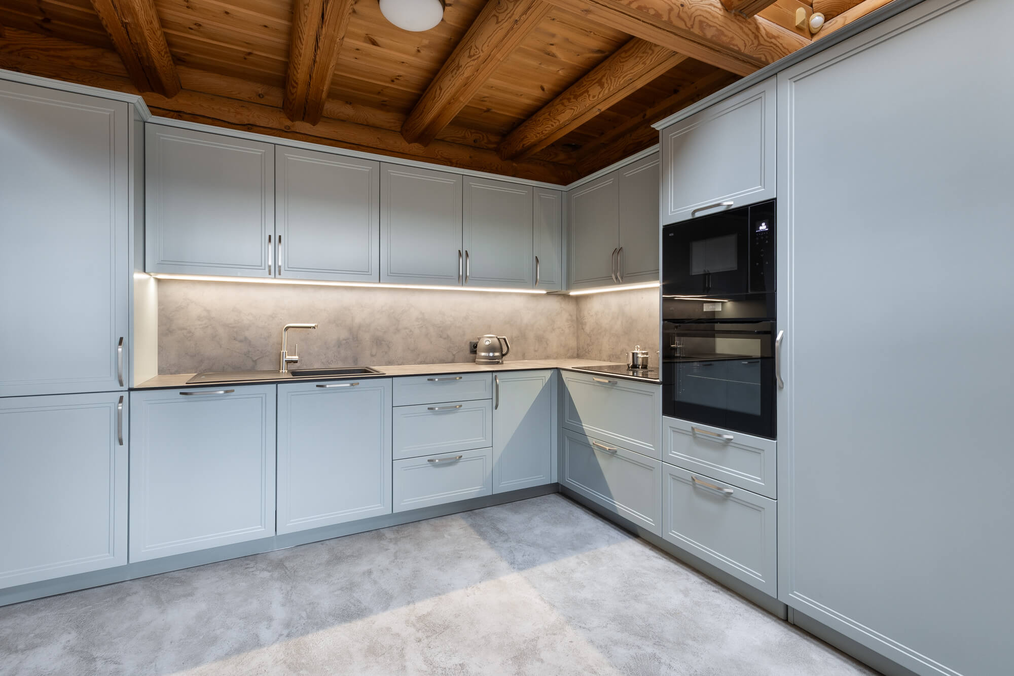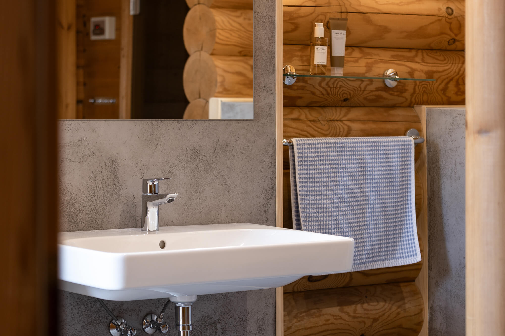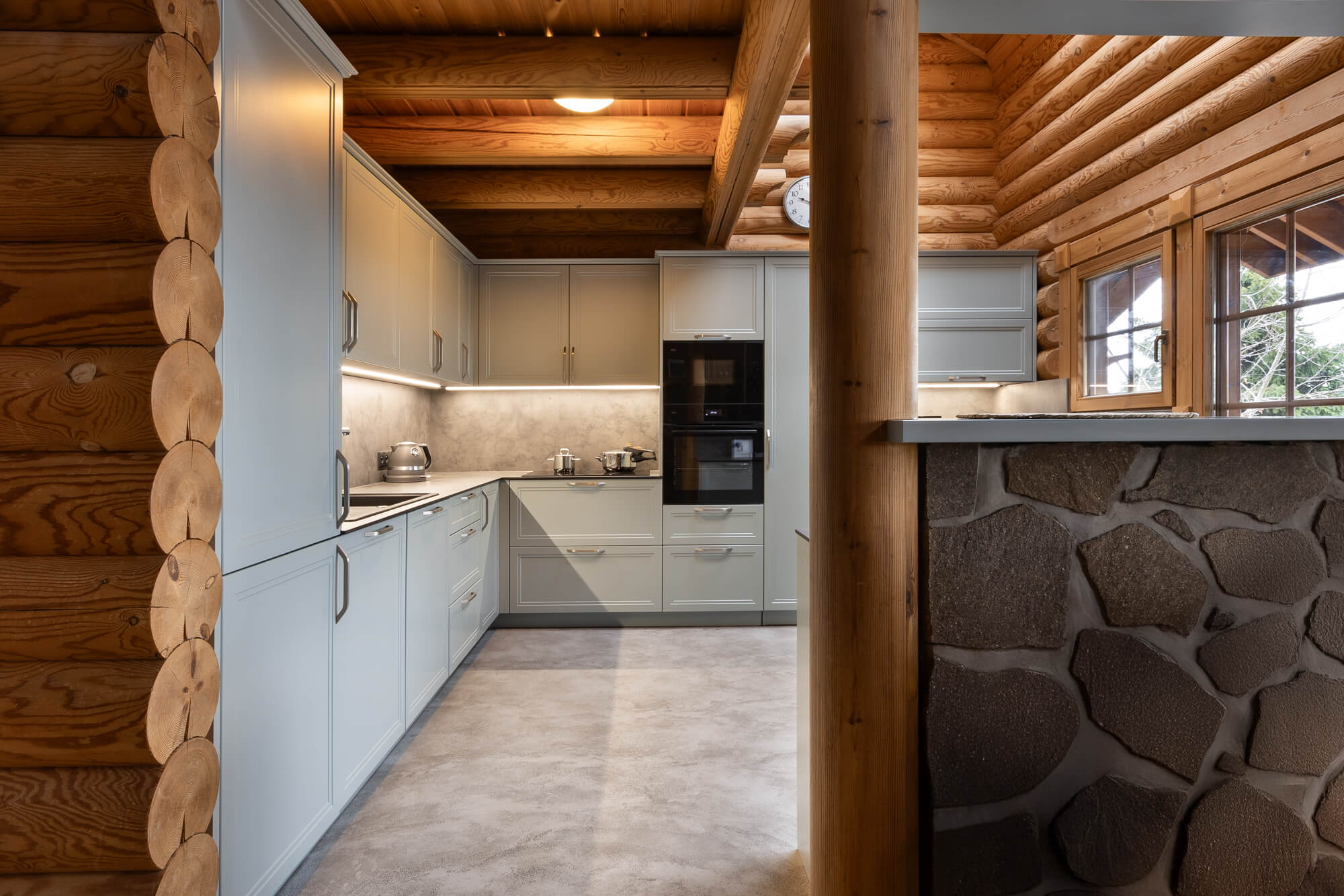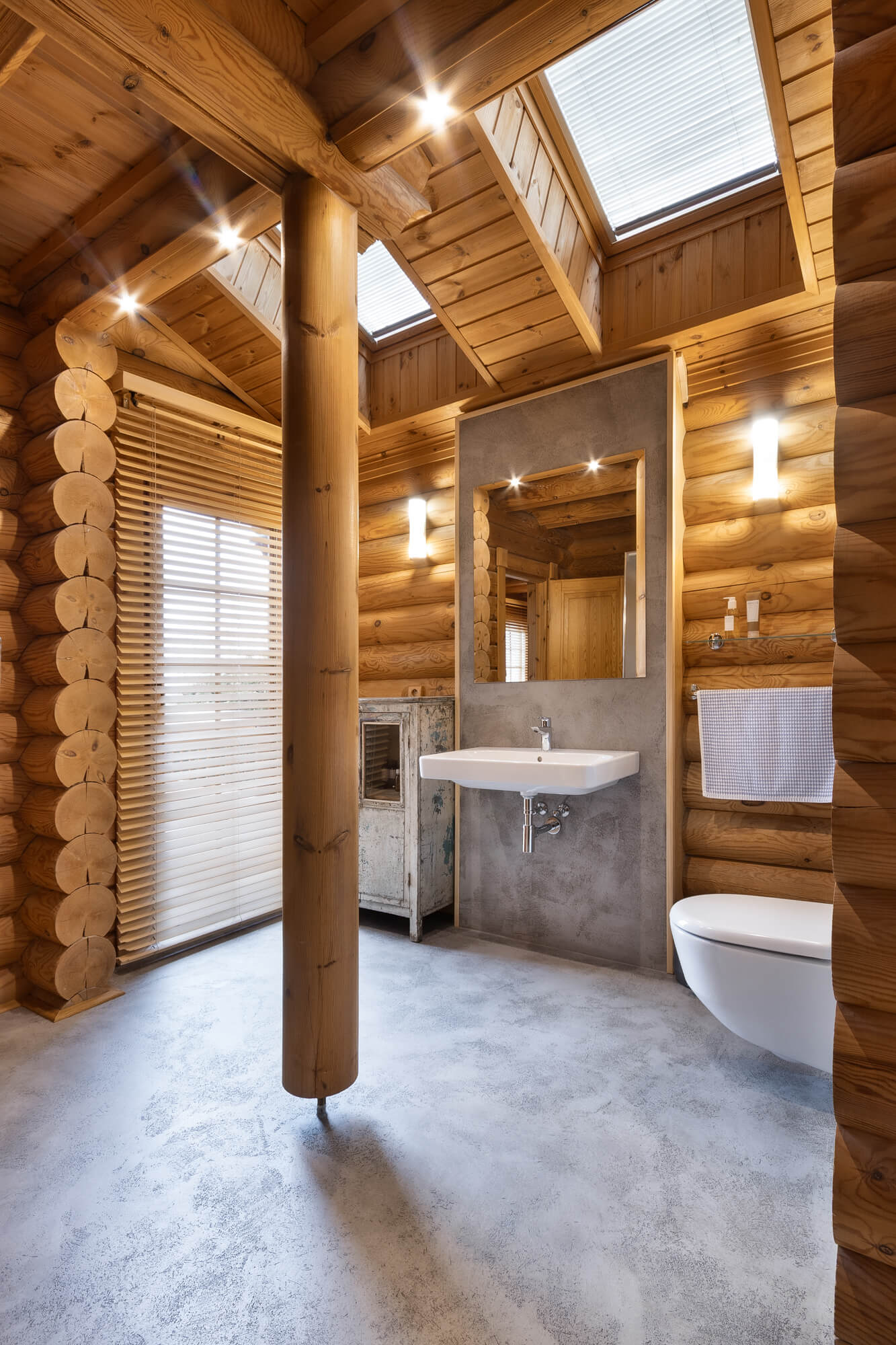 V rodinném domě ve Svatém Janu jsme realizovali betonovou stěrku Betonepox® Classic na podlahách v koupelně a kuchyni, kde přirozeně doplňuje masivní dřevo srubu a podtrhuje jeho nadčasový charakter. V koupelně byla stěrka aplikována také do sprchového koutu, kde vyniká svou voděodolností a funkčností. Výsledkem je harmonické propojení přírodních materiálů, moderního designu a praktického řešení pro každodenní život.
