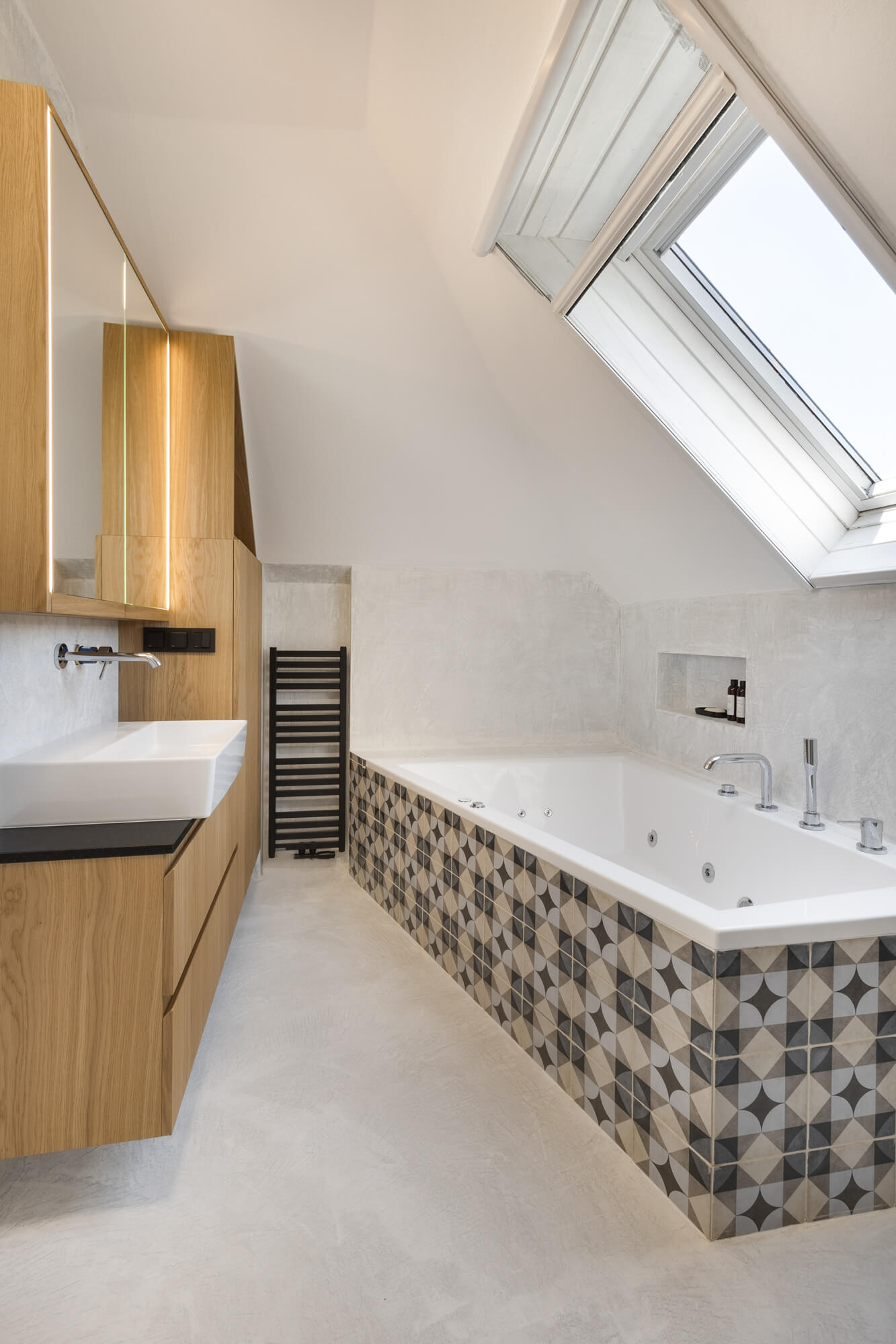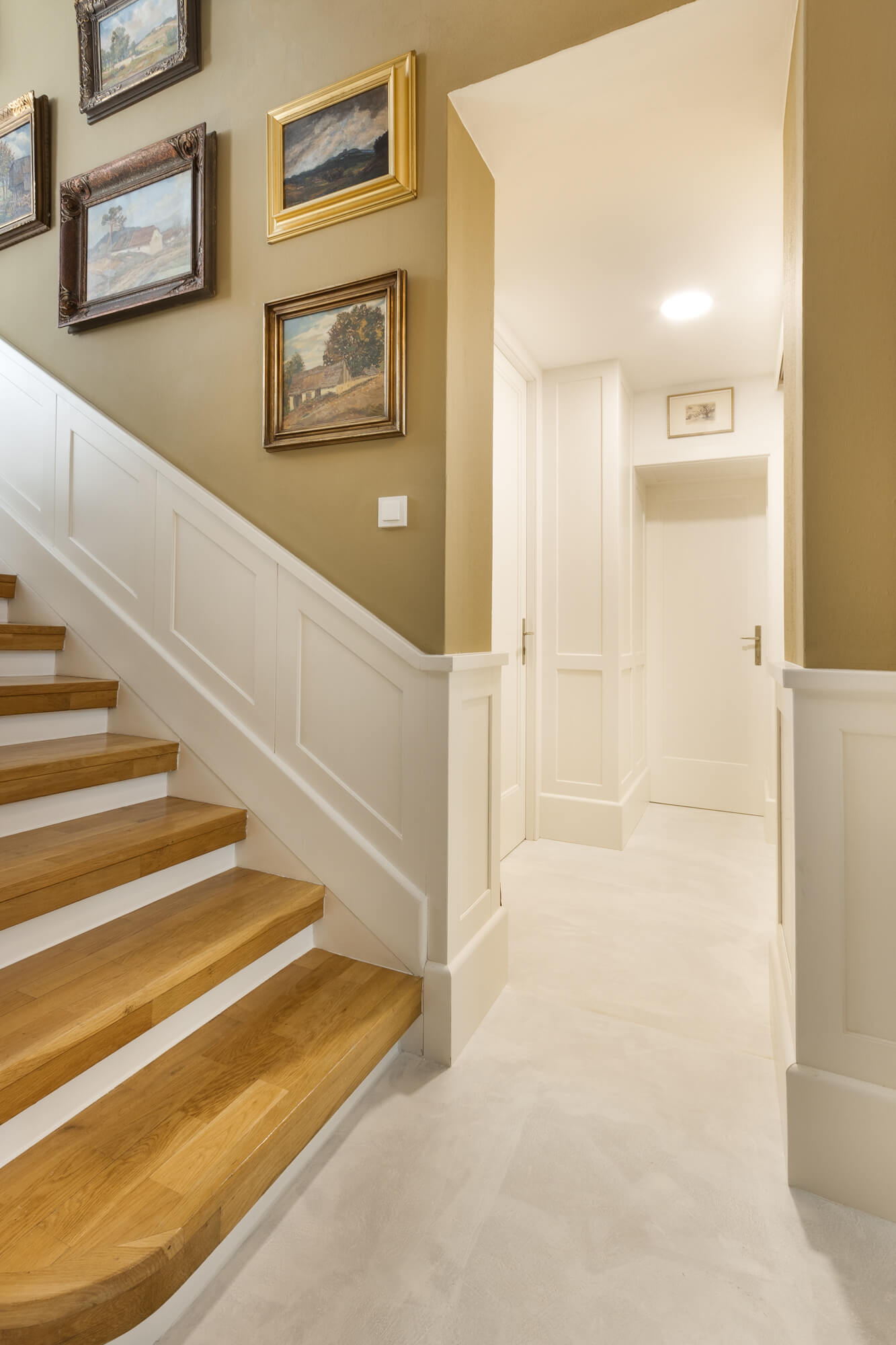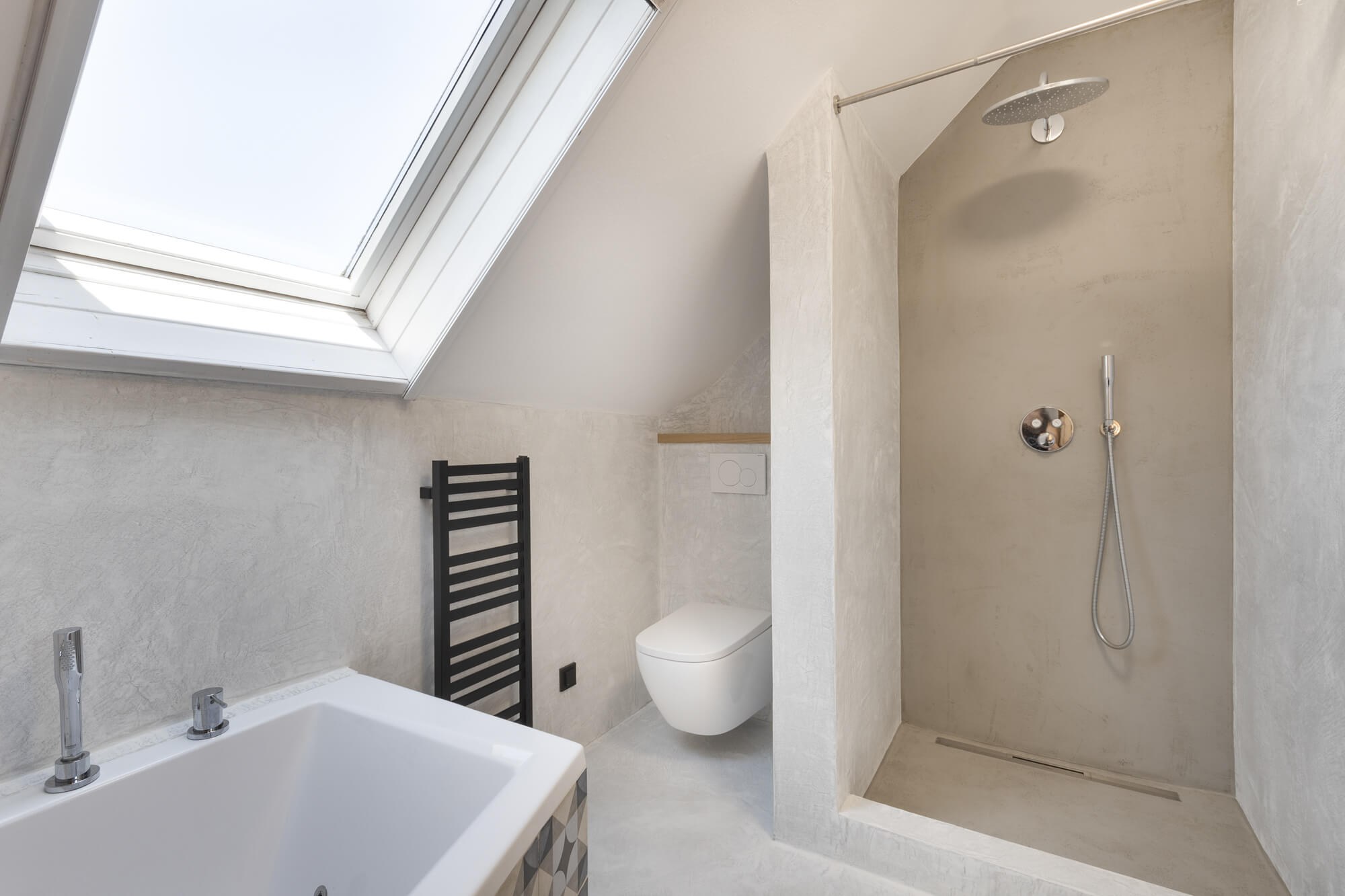 V prostorném interiéru tohoto rodinného domu na Vysočině jsme aplikovali stěrku Betonepox® Ultrasoft na podlahy a Betonepox® Classic na podlahy a stěny v okolí sauny. Tento odolný materiál s betonovým vzhledem vnesl do prostoru moderní a příjemnou atmosféru, která spojuje styl a pohodlí.