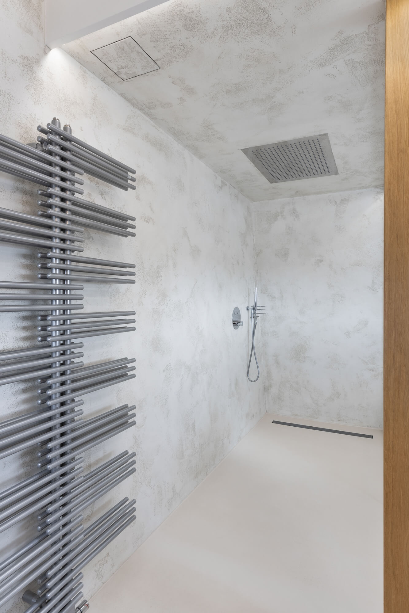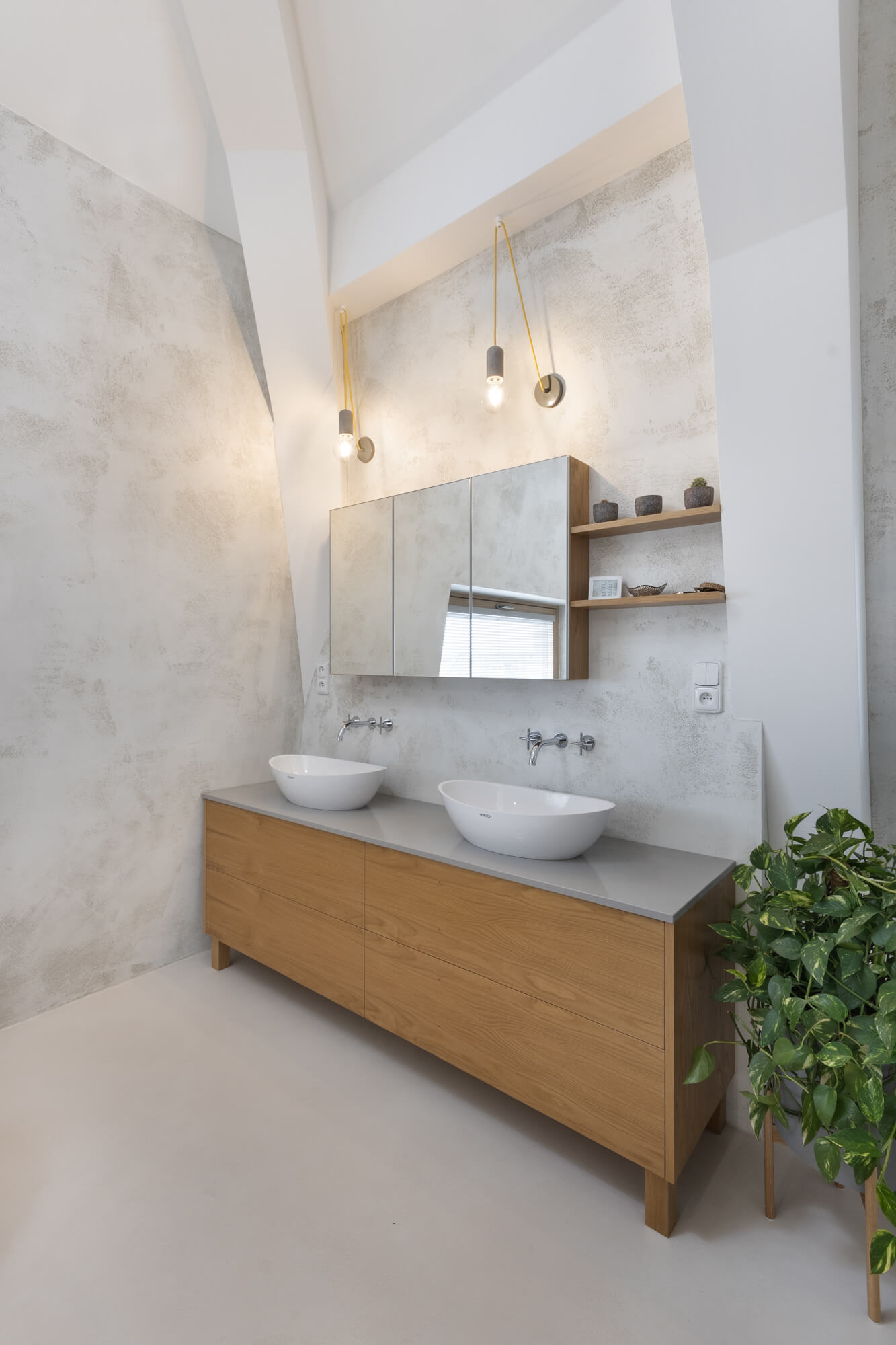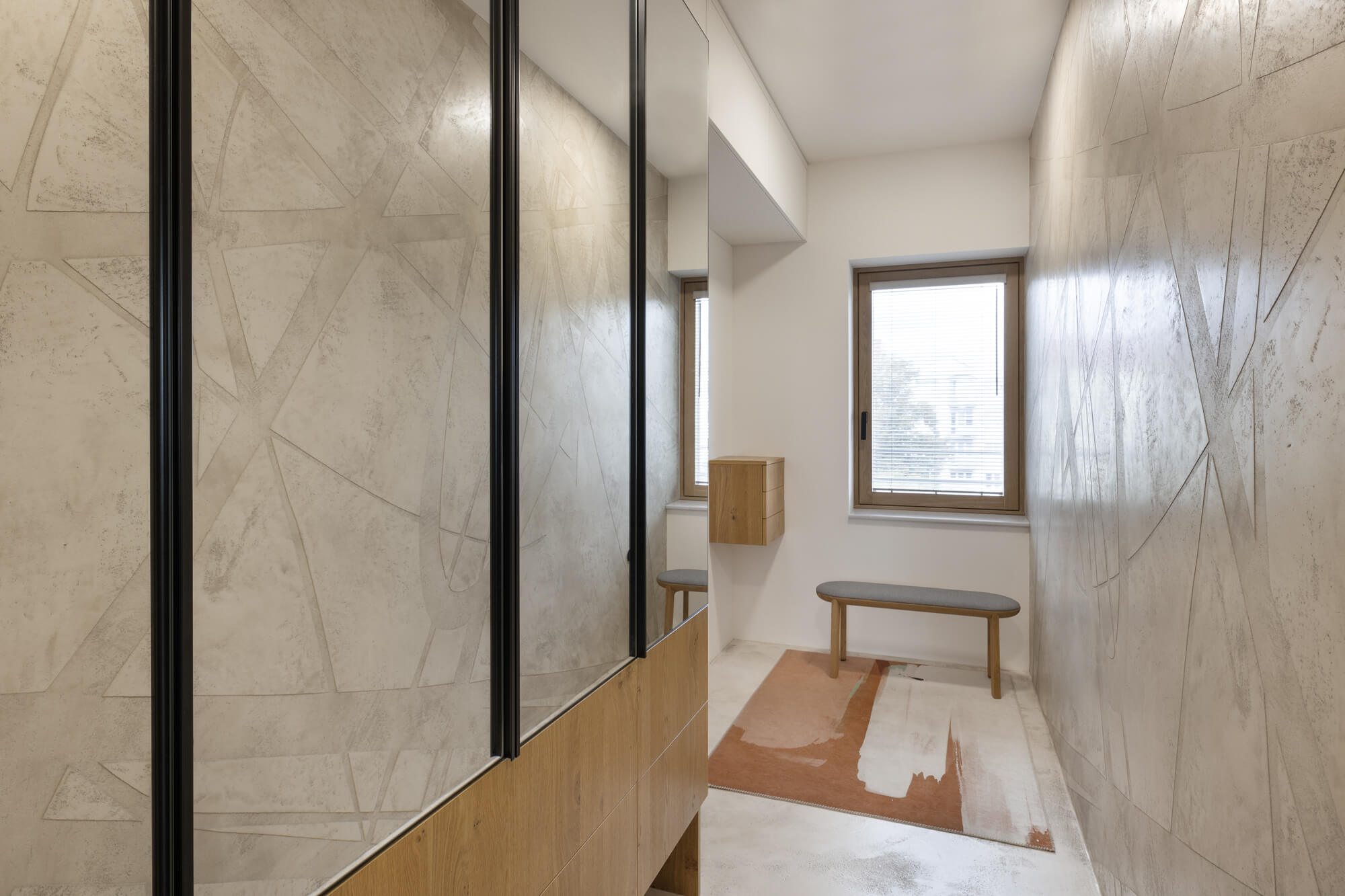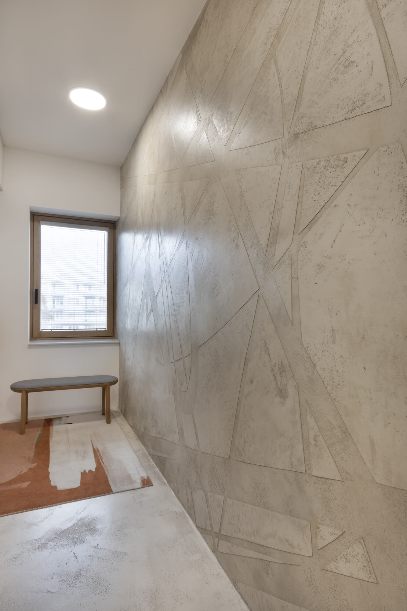 Krásu tohoto atypického prostoru podtrhla nadčasová stěrka Betonepox®. Díky její odolnosti a vzhledu to byla jasná volba. Prostor u vstupu navíc ozvláštnila stěrka Imitace betonu® s grafikou.