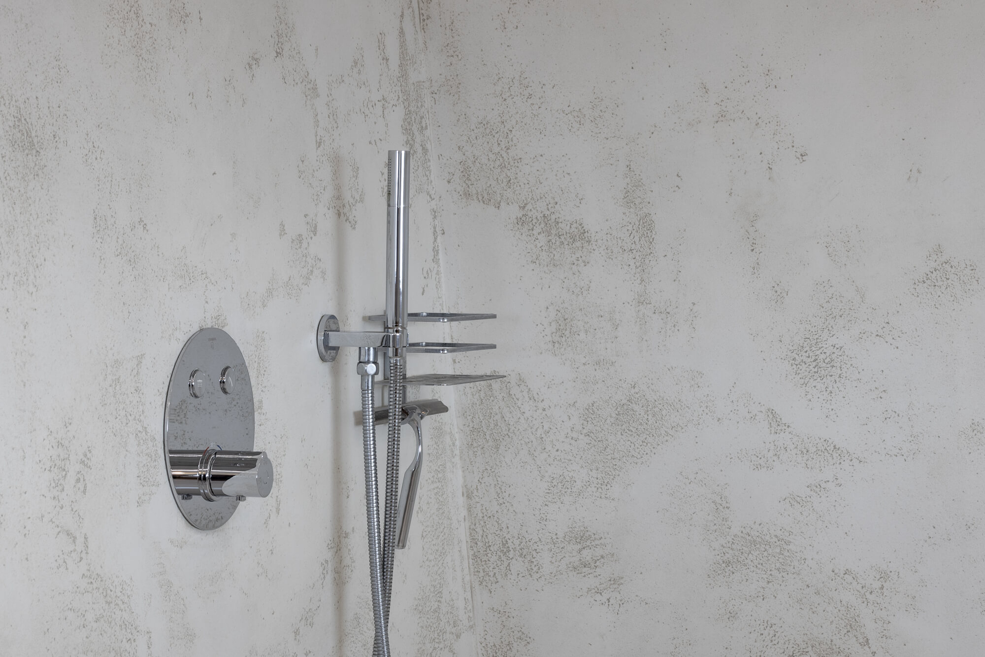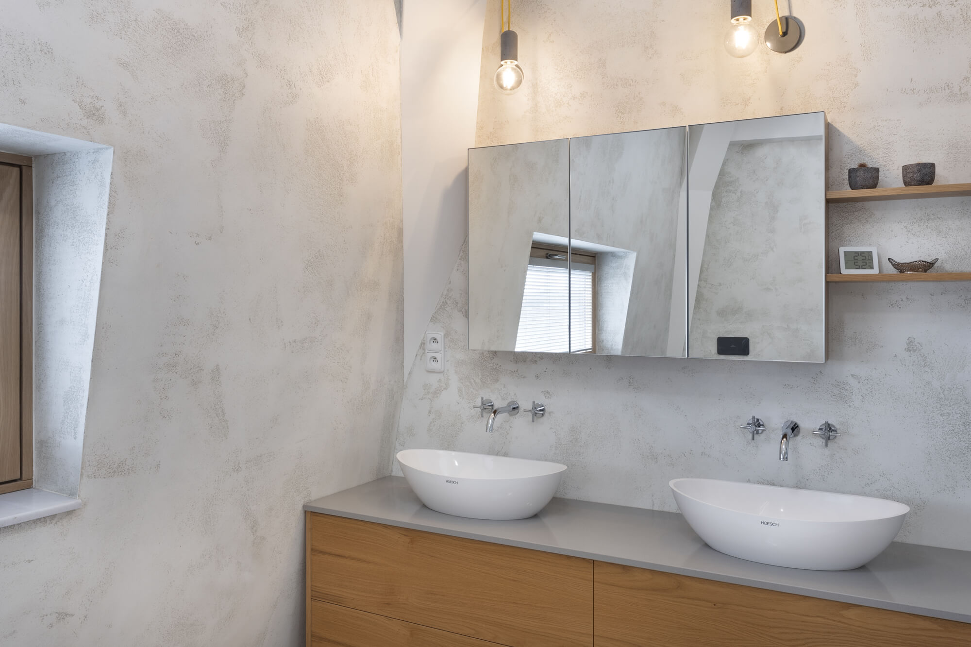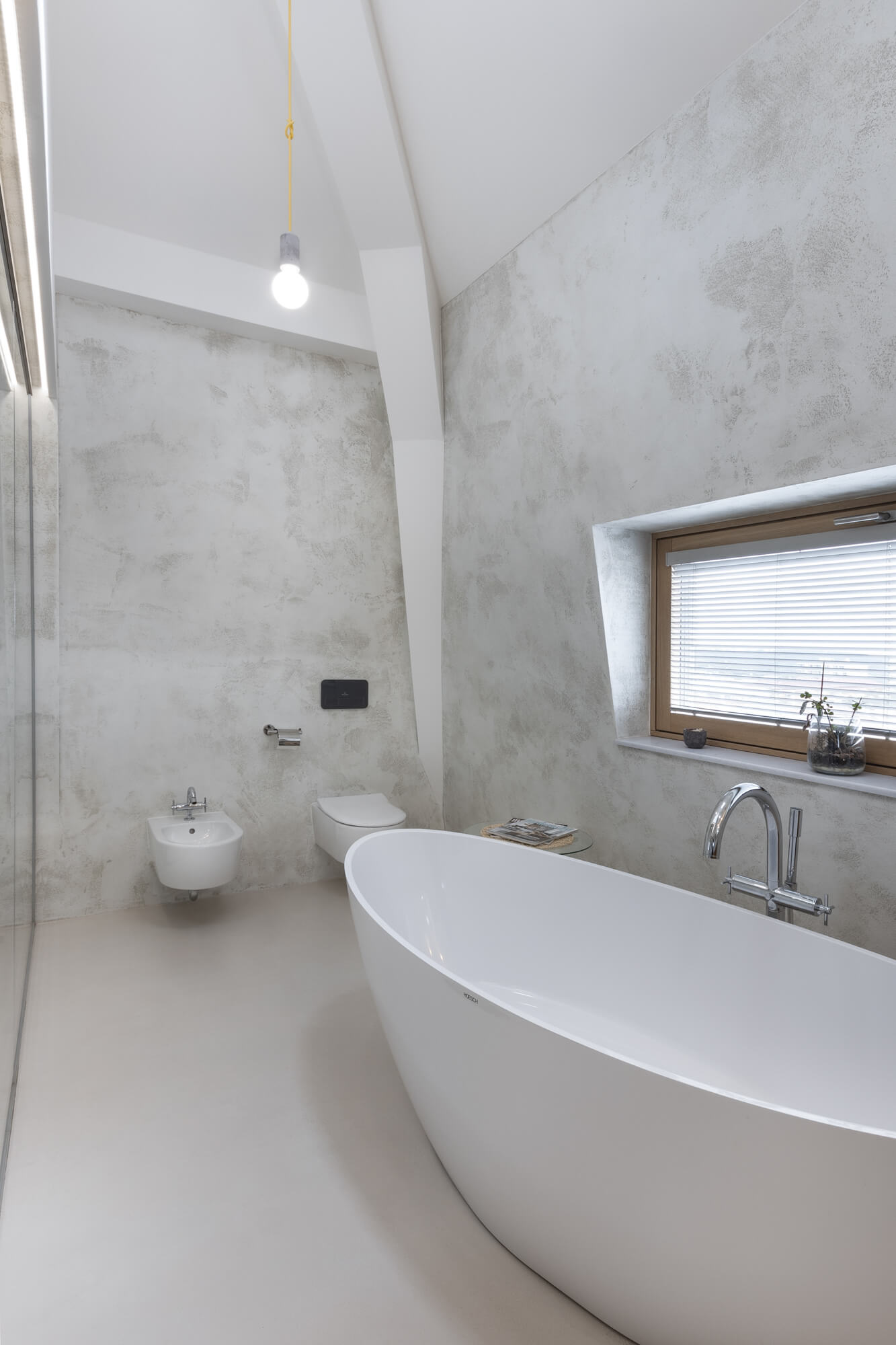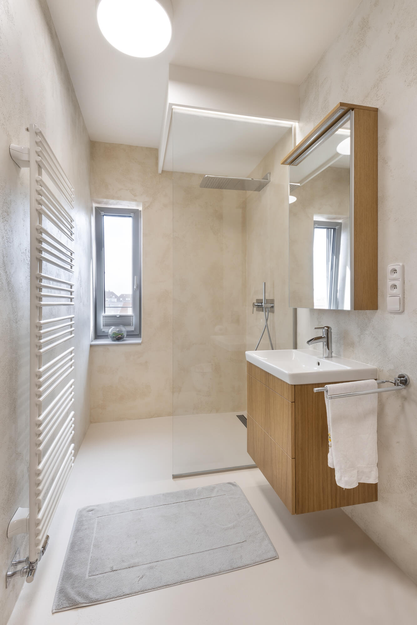 Krásu tohoto atypického prostoru podtrhla nadčasová stěrka Betonepox®. Díky její odolnosti a vzhledu to byla jasná volba. Prostor u vstupu navíc ozvláštnila stěrka Imitace betonu® s grafikou.