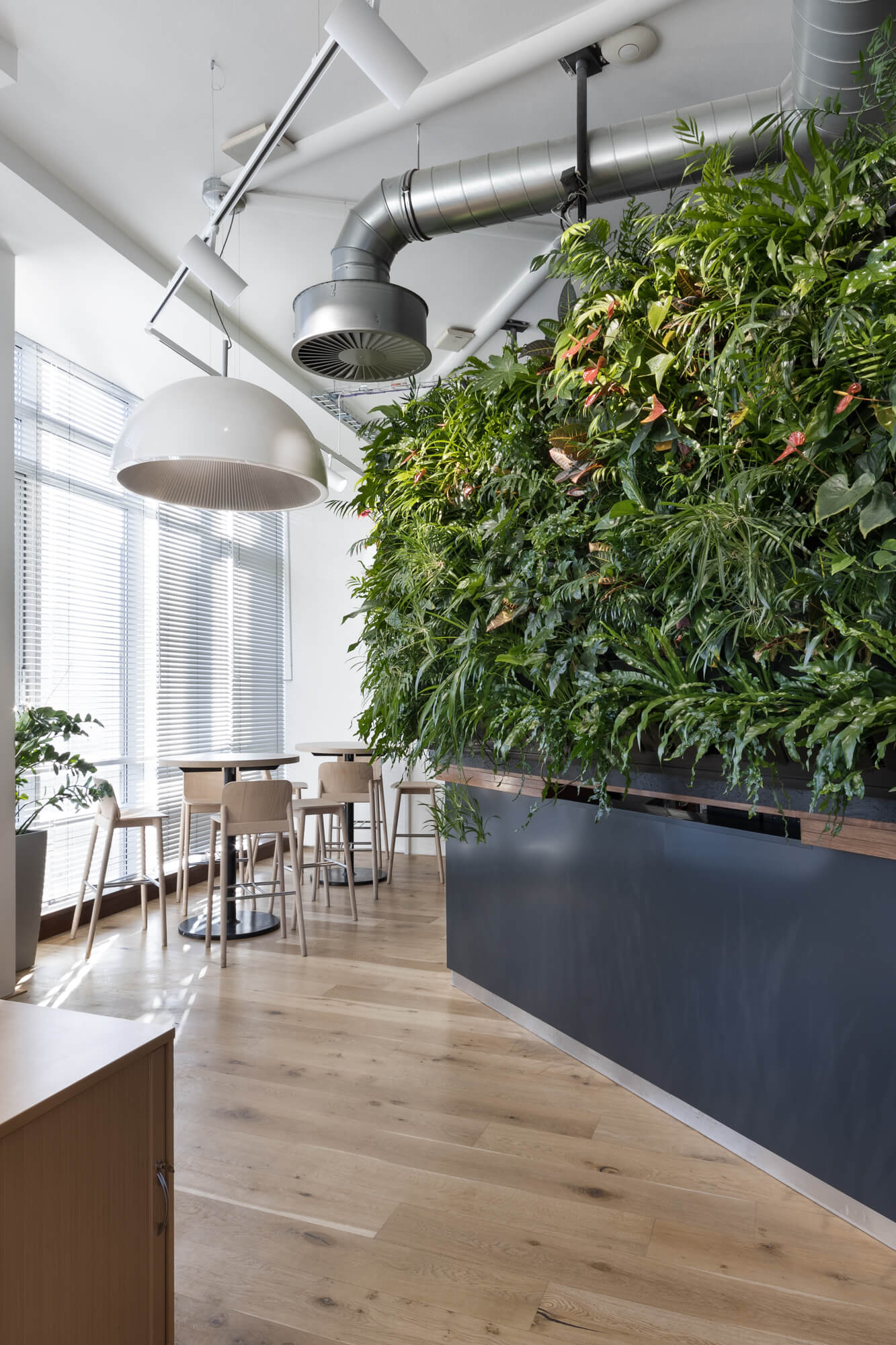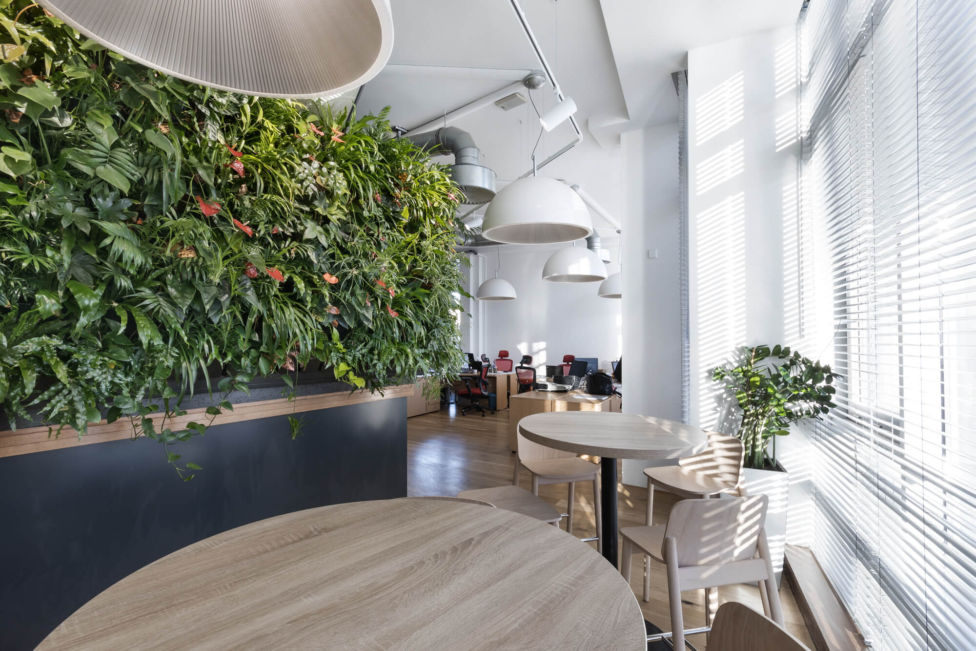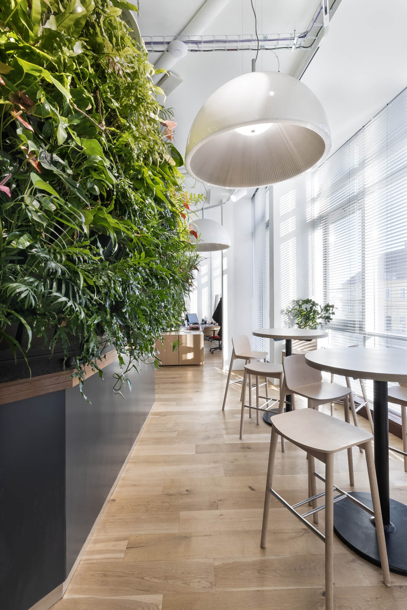 Vertikální kaskádová zahrada Cascade Garden® zde plní nejen estetickou roli, ale přináší i praktické benefity pro vnitřní prostředí. V administrativních prostorách pomáhá vyrovnávat relativní vlhkost vzduchu, která bývá v kancelářských budovách přirozeně nižší, a přispívá k příjemnějšímu a vyváženějšímu klimatu interiéru.